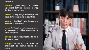 주제별 고급 어휘 엄선하여 소개해 드립니다. 어휘의 의미, 발음, 어원, 뉘앙스를 설명해 드리고, 기억하기 쉽게 이야기처럼 엮은 예문을 통해 배운 내용을 복습합니다.